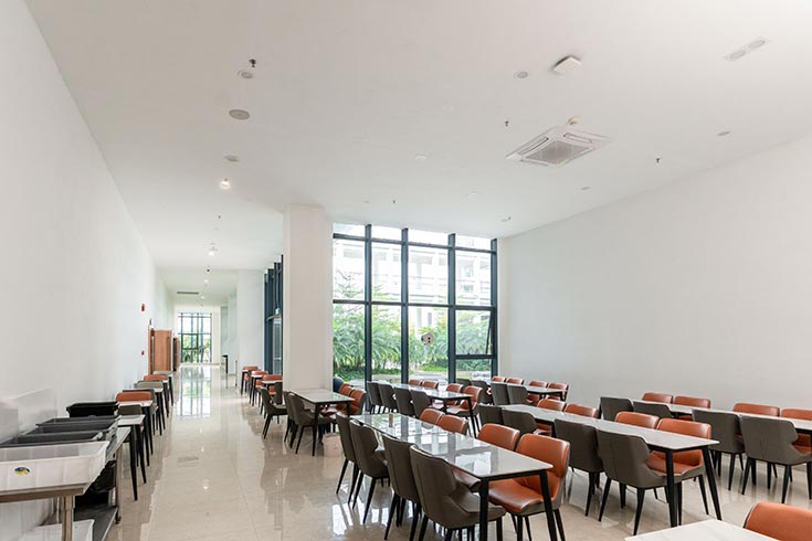· 园区配套:污水处理厂(处理规模2000t)、动力中心、双回路保障用电、能源中心(冷源、蒸汽)、危险品仓库、生活配套(多形态餐厅、人才公寓、健身房、羽毛球馆)。