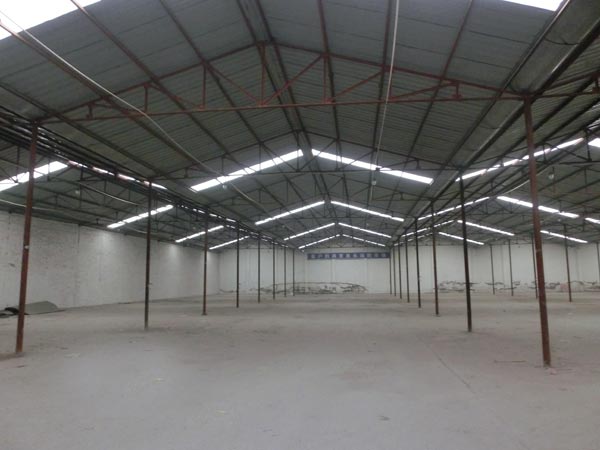 占地面积22亩,建筑面积12000平米,现分为六栋,其中有2800平米,2400平米,1000平米,600平米,400平米和225平米不等,办公面积2500平米,空余面积3000平米,房高为4.5-5米。