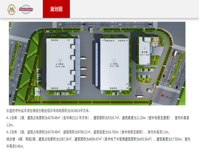 在建的中外运天津空港综合物流项目净用地面积为26188.9平方米。