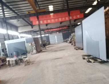 总占地34亩;库房面积6000平米,办公室和宿舍400平米。 檐高8.1米,顶高9米,长为82米,宽48.9米,跨度25米,办公室和宿舍400平米。 车间内有3个天车,每个5吨,天车挂钩高点5米,天车流水5.9米。 有变压器200KAV。
