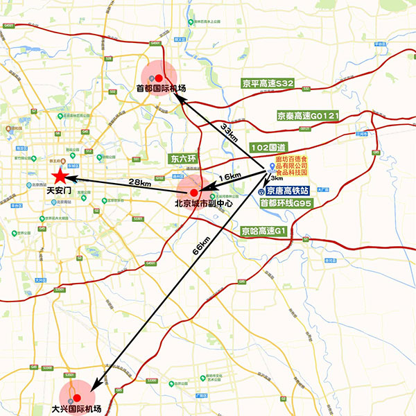廊坊百德食品科技园项目新建四层钢结构厂房,总建筑面积21500平米。坐落于河北省大厂高新技术产业开发区内,距离北京CBD40公里,与北京城市副中心一河之隔,直线距离不足16公里,厂区周边拥有京平、京秦、京哈、通燕、环首都高速等多条高速公路及102、103国道,距离京唐高铁站不足1.5公里,毗邻京津,交通四通八达,京津冀共同发展,北三县区位优势明显。